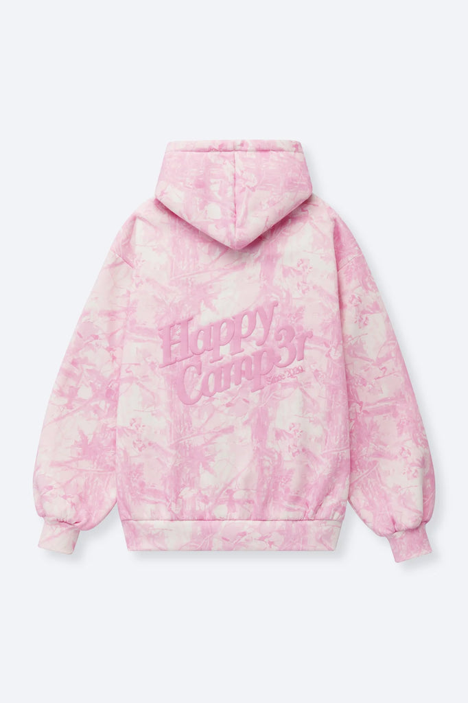 Blend in, stand out. The Soft Pink Camo Zip-Up Hoodie is made from a cozy cotton-blend fleece that keeps you warm without weighing you down. With a relaxed fit, full-zip front, and roomy kangaroo pockets, it’s the perfect layer for lounging or heading out. The soft pink camo print adds a fun, feminine twist to a classic staple.